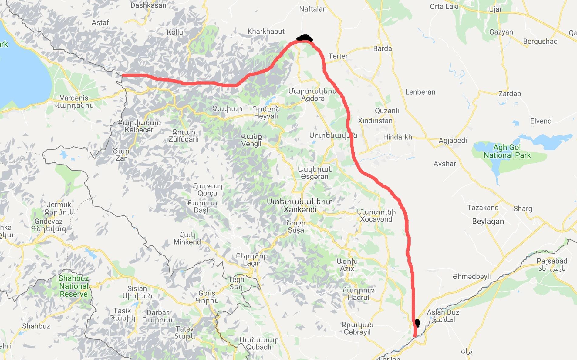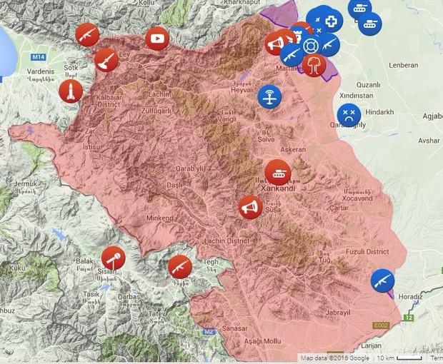 На ней видно также какое изменение фронта предполаают авторы карты на юге Карабаха. Впрочем, тот факт, что эти их карты являются фейковыми, подтверждается и тем, что на новых картах никаких отметок контроля Азербайджана над территорией НКР нет, а территория НКР показывается в старом виде.