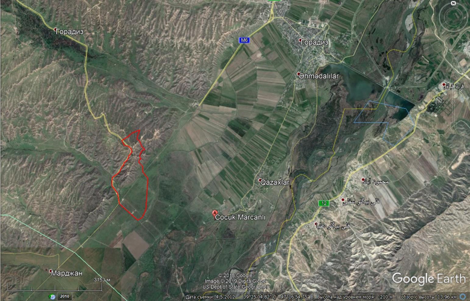 Там же недалеко находится азербайджанское село Чоджук Марджанлы, которое согласно заявлениям азербайджанских властей, было освобождено в ходе апрельской войны. Однако как азербайджанская армия могла освободить это село, если оно и так находилось под контролем Азербайджана и до 2016 года? Единственное разумное объяснение, которое приходит в голову - это то, что заняв высоты, доминирующие над селом, азербайджанские вооруженные силы смогли обезопасить его от возможных обстрелов.