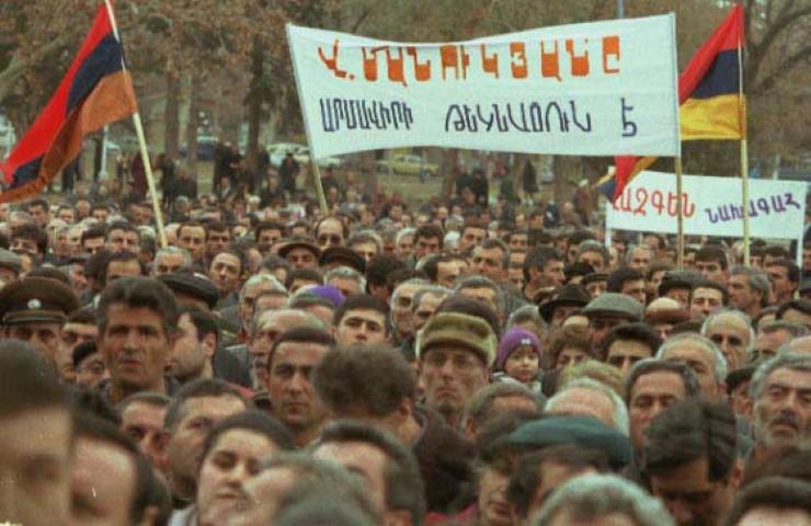 В Армении и сейчас сильна ностальгия по советским временам (см. Как Армения стала самой сердитой страной мира в опросе Gallup). Тогда она, вероятно, была еще сильнее. Точнее, как это выражалось процентно, сказать не могу, но то что распад СССР тогда переживался острее – очевидно: об этом говорит например тот факт, что Коммунистическая партия Армении тогда демонстрировала серьезные результаты.