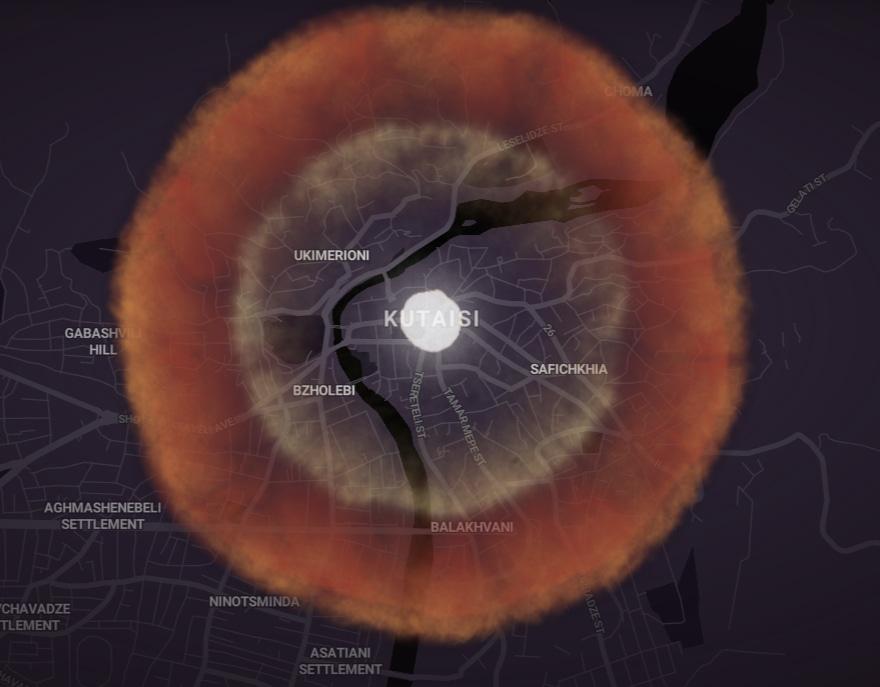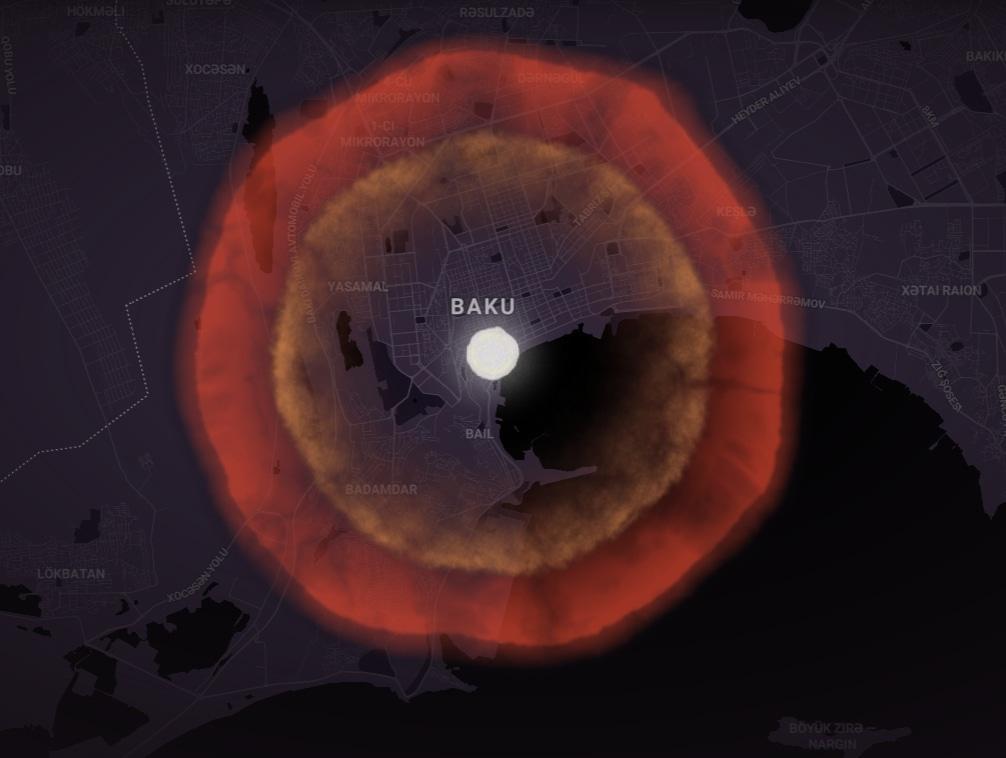 В последние пару лет распространились симуляторы ядерного взрыва, которые позволяют проверить эффект атомного взрыва на разных городах мира. Шутки ради, я решил симулировать взрыв ядерной бомбы над городами Южного Кавказа. Начнем с трех столиц, на которые можно сбросить трехсоткилотонную бомбу W-87, причем устроить взрыв как в воздухе, так и на земле. Разрушительный эффект от взрыва в воздухе больше, поэтому применим этот метод.