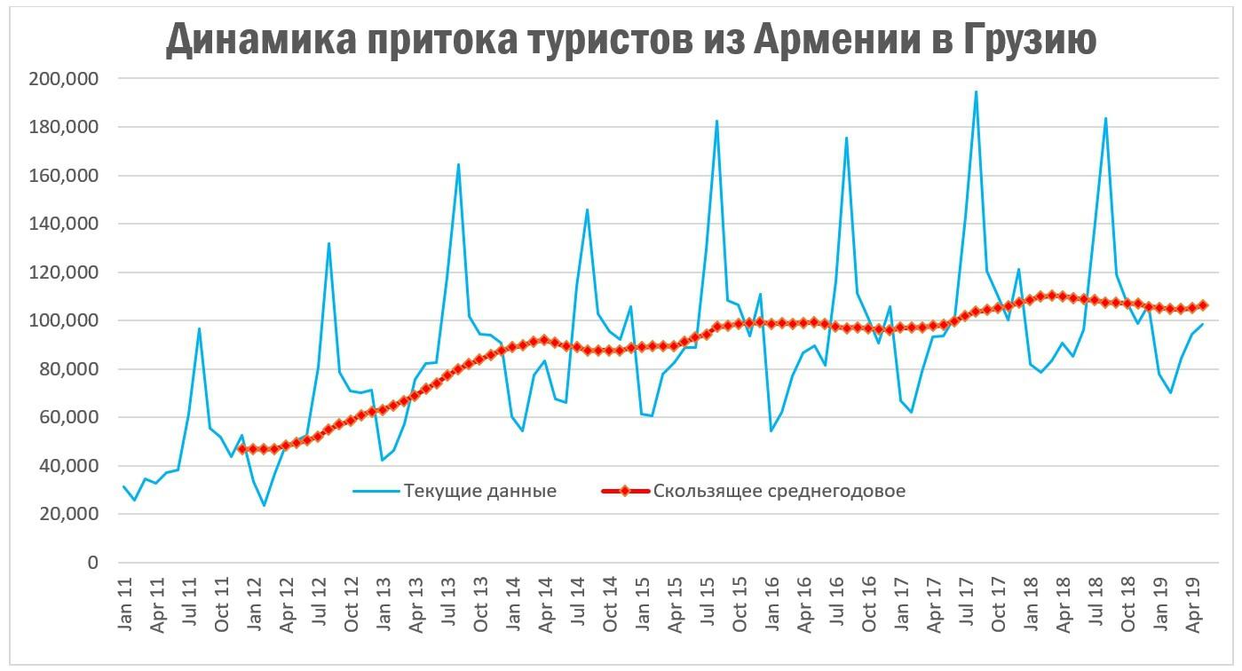 Итого, 1.5 миллиона россиян прибывают в Грузию авиатранспортом в 2019 году, а всего – 2.24 миллиона. А всего из них уже прибыли или прибудут до конца июня 830 тысяч человек, итого до конца года могло бы приехать 1.61 млн россиян, из них, условно, 1.08 млн россиян – авиатранспортом. В то же время, армянские авиакомпании готовы увеличить число рейсов в Россию, чтобы дать возможность части туристов все же приехать в Грузию. Также, подобный подход проявит Белавия и ряд других авиакомпаний из бывшего СССР.