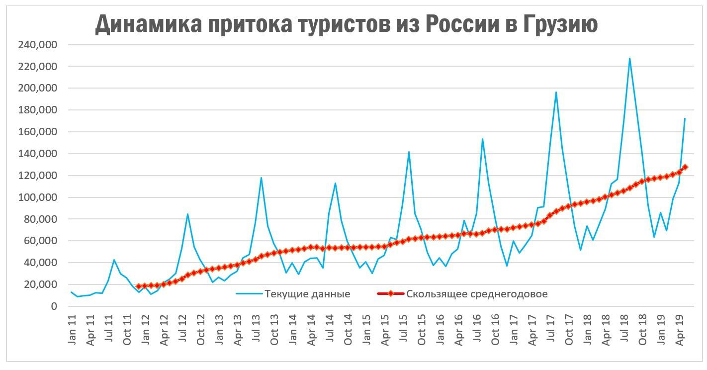 Оценка численности притока российских туристов в Грузию