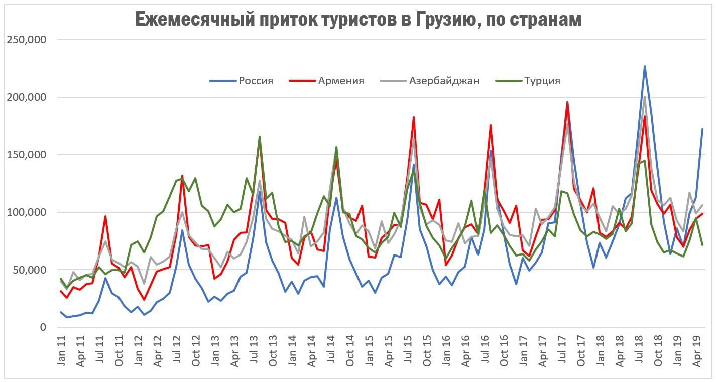 Напоследок, данные по притоку туристов в Грузию по странам - в графическом виде