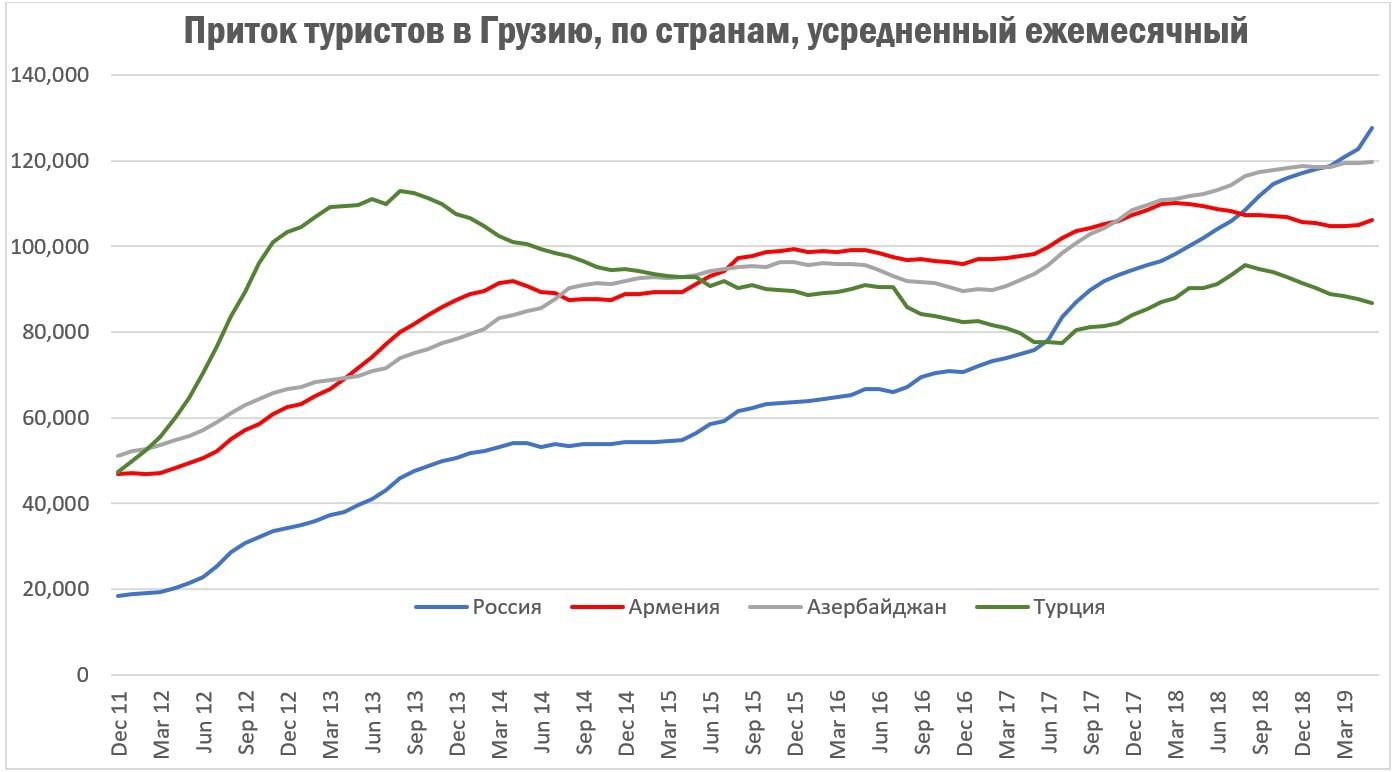 6. Усредненный ежемесячный приток туристов в Грузию из соседних стран