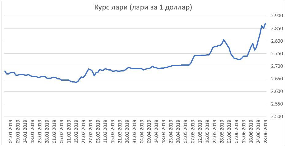 Теперь что касается курса лари. Ниже – график обменного рыночного курса лари (данные с сайта investing.com).