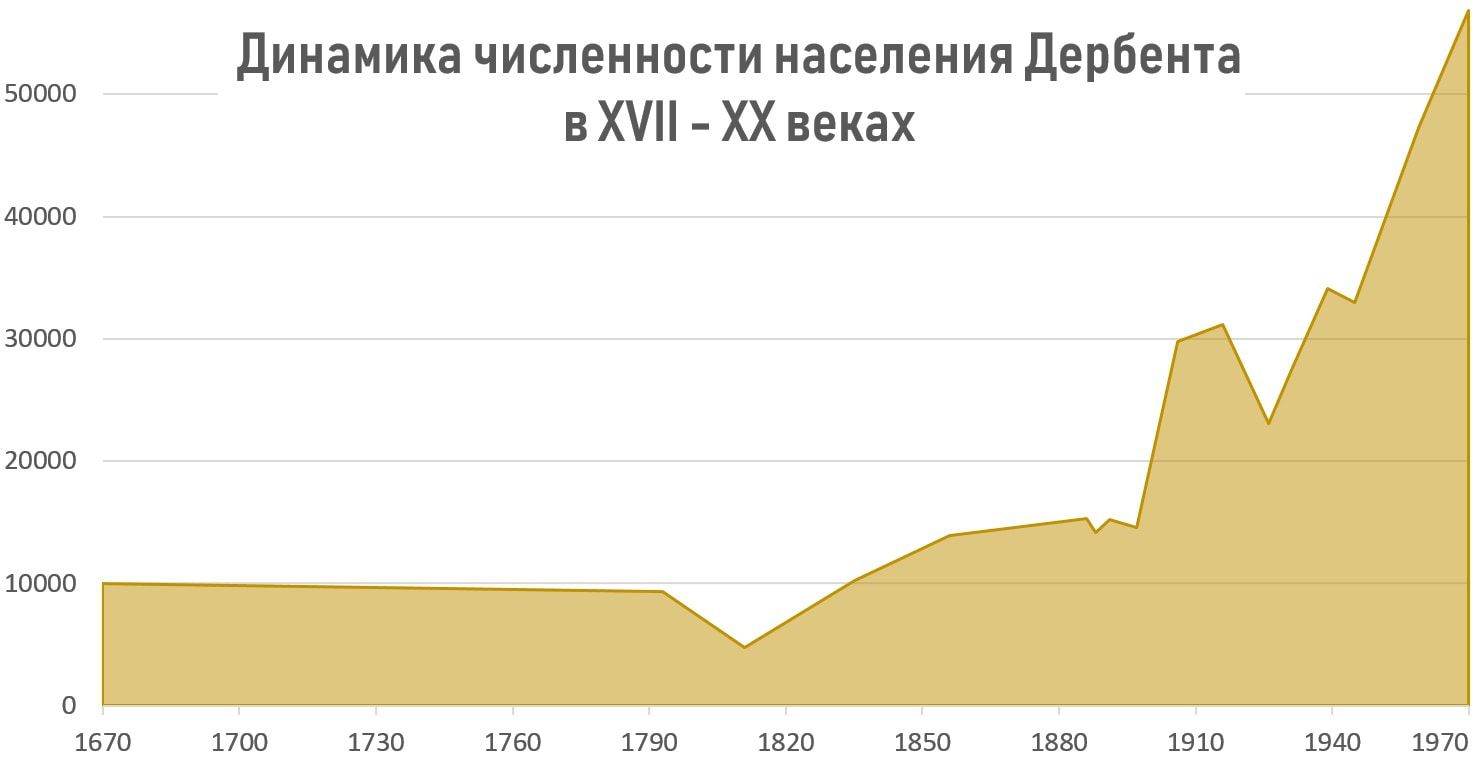 Рассмотрим динамику численности населения Дербента за XVII-XX века. Она представлена на графике ниже.