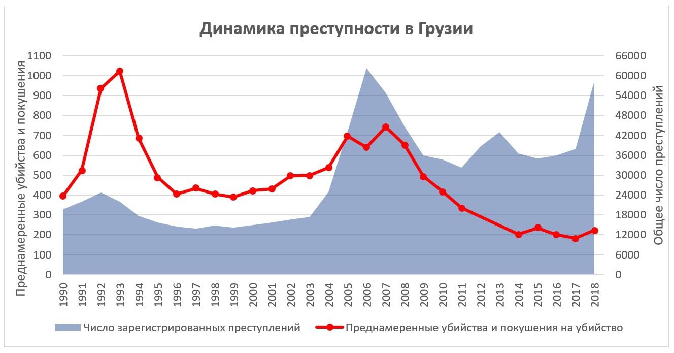 Уже приведенные выше данные убедительно показывают не только то, что необходимости в кампанейщине нет, но и что она контрпродуктивна как краткосрочно, так и долгосрочно. В 2018 году число убийств и покушений в Армении сократилось в 5.6 раз по сравнению с 1992 годом, когда их было больше всего. В Грузии сокращение по сравнению с пиковым 1993 годом составило 4.6 раза.