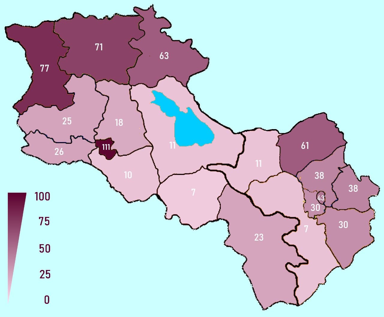 Эта карта – от Всеармянского фонда. Я составил свою карту, на уровне регионов Армении и НКР; вышло следующее: