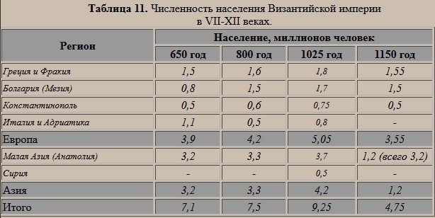 Также, у нас есть оценки Уоррена Трэдголда (Treadgold) – приведенные им в книгах A History of the Byzantine State and Society, а также A Concise History of Byzantium. Эти оценки также приведены в Википедии.