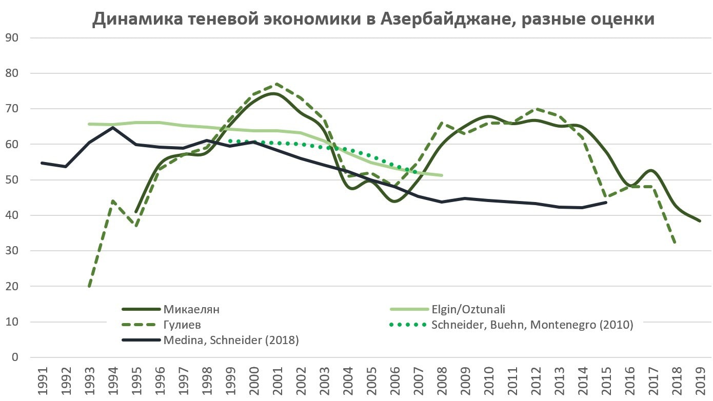 В 2018 году в этом блоге я уже публиковал оценки динамики теневой экономики стран Южного Кавказа, в том числе в страновых экономических обзорах. Наиболее интересным может быть: Теневая экономика Армении после революции (28 октября 2018). Также стоит ознакомиться с «Как в 70х гг. на Западе узнали о коррупции в советском Закавказье».