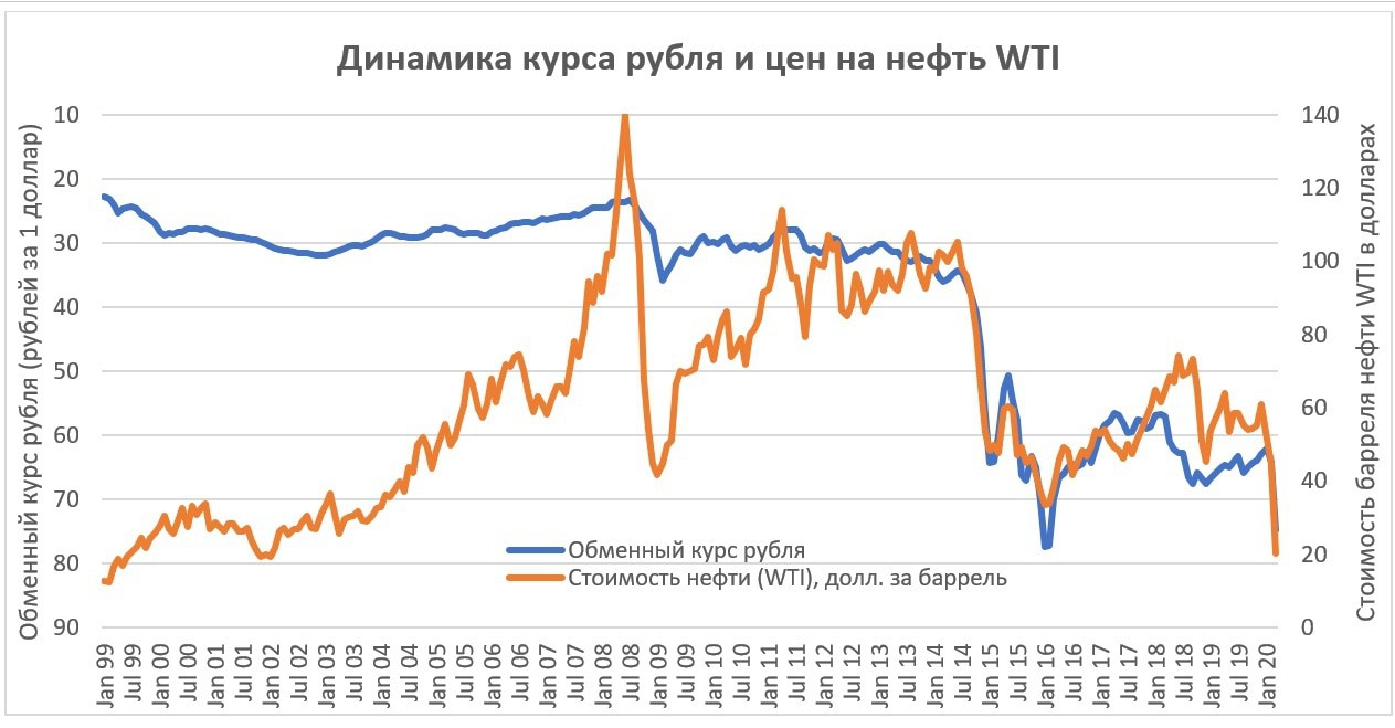 Сейчас ситуация тоже двойственная. Уже очевидно начинается глобальный экономический кризис (хотя его тяжесть и длительность еще неизвестны), введен жесткий карантин во многих странах, в том числе и в России, и это все сопровождается снижением нефтяных цен. Каким будет влияние именно нефтяных цен сказать будет опять же сложно именно из-за того, что сейчас оно комбинируется с рядом других факторов, а также с санкциями, которые до сих пор не отменены. Но шоковое снижение нефтяных цен само по себе наносит сильный удар по экономике.