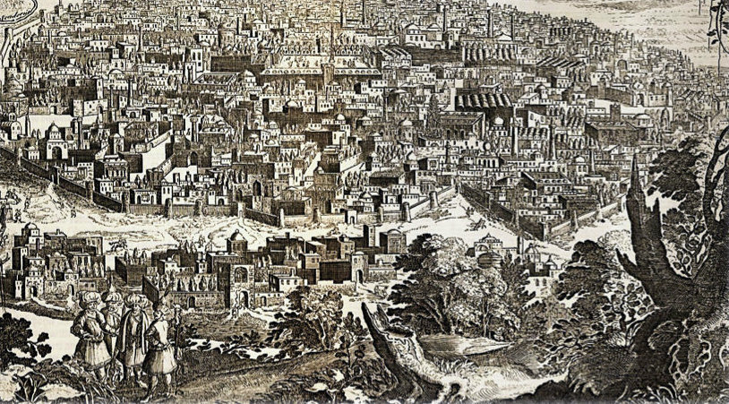 Примерно тогда же город посетили и другие европейцы, зарисовав его с разных сторон. Эта картинка - от 1671 года. André Daulier Deslandes (рисунок), Israël Silvestre & Antoine Paillet (гравюра).