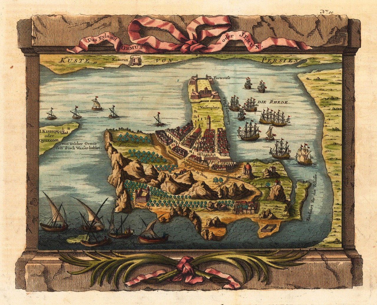 Довольно большого внимания со стороны европейских картографов удостоился портовый город Ормуз на юге Ирана. В XIII веке туда прибывал Марко Поло. В 1515 году город был колонизирован португальцами и оставался под их контролем на протяжении более ста лет, пока в 1622 году они не передали город персам.