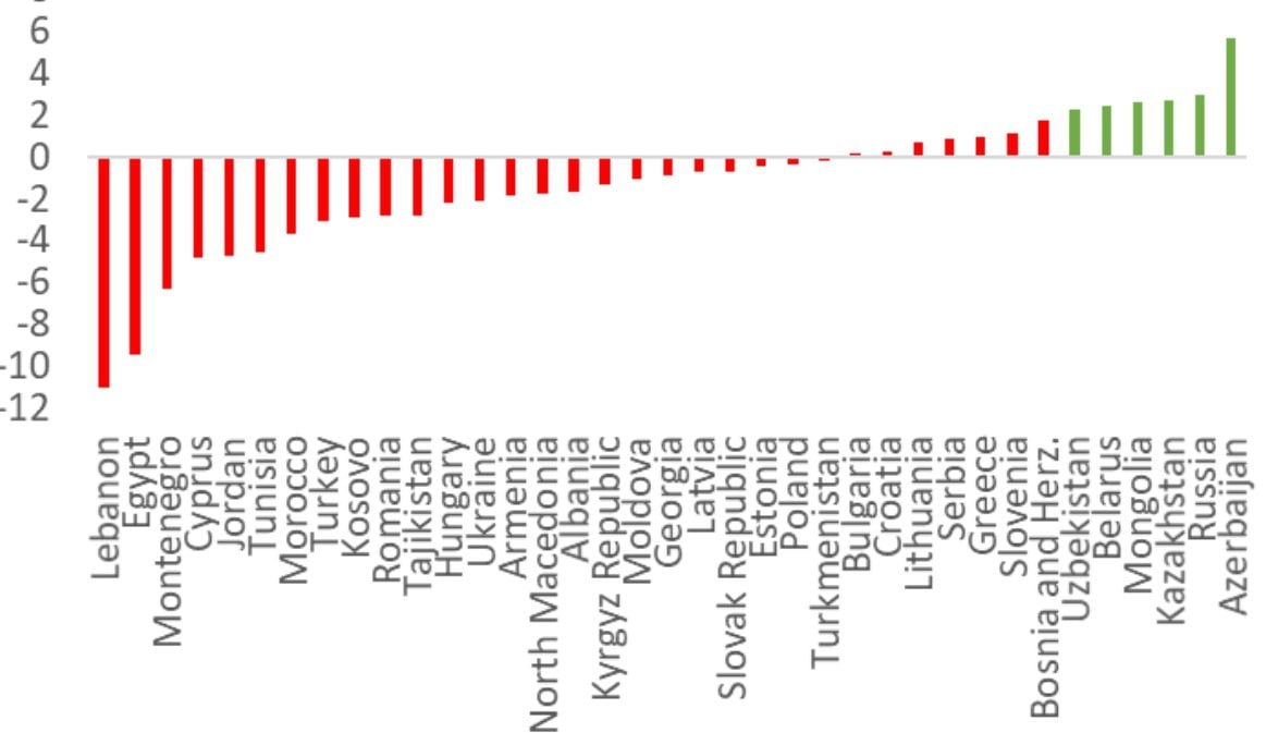 Наконец, открытым вопросом является и то, как вся эта ситуация повлияет на внешнюю торговлю и интеграцию. Например, в Грузии ожидают спада экспорта, а вот Армения здесь наиболее уязвима. Значительную часть роста экспорта в последнее время обеспечило вступление в ЕАЭС; благодаря этому росла и обрабатывающая промышленность. А вот что будет если интеграция ослабнет и доступ на рынки партнеров будет затруднен (что уже происходит) – пока даже сложно предположить. См. также: Как вступление в Евразийский Союз повлияло на экономику Армении.