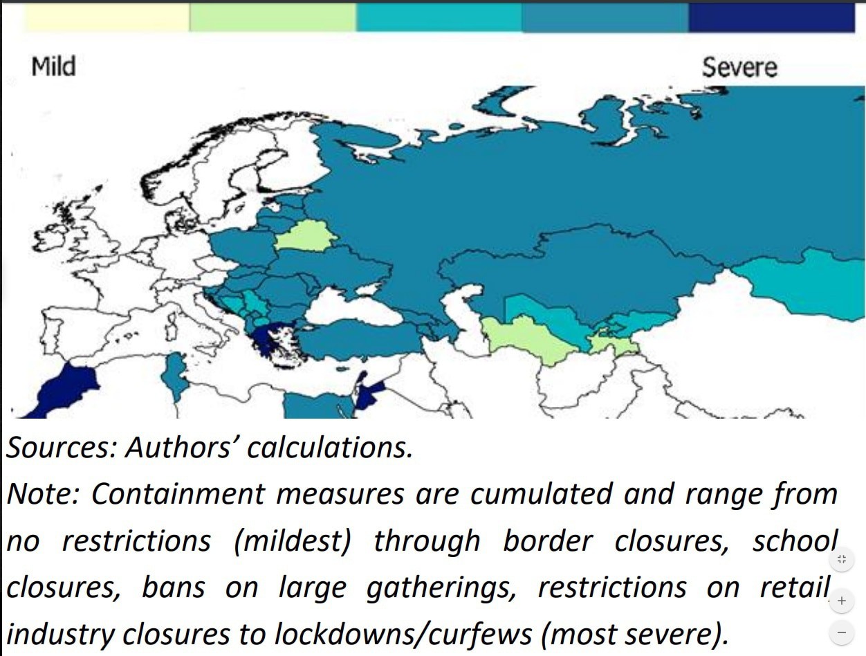 Помимо вышесказанного, ЕАБР выпустил еще один доклад – Regional Economic Prospects, где детальнее обращается к вопросам, связанным с экономикой стран-членов ЕАБР. (Regional Economic Prospects. COVID-19: From Shock to recovery). Приведу ряд графиков оттуда.