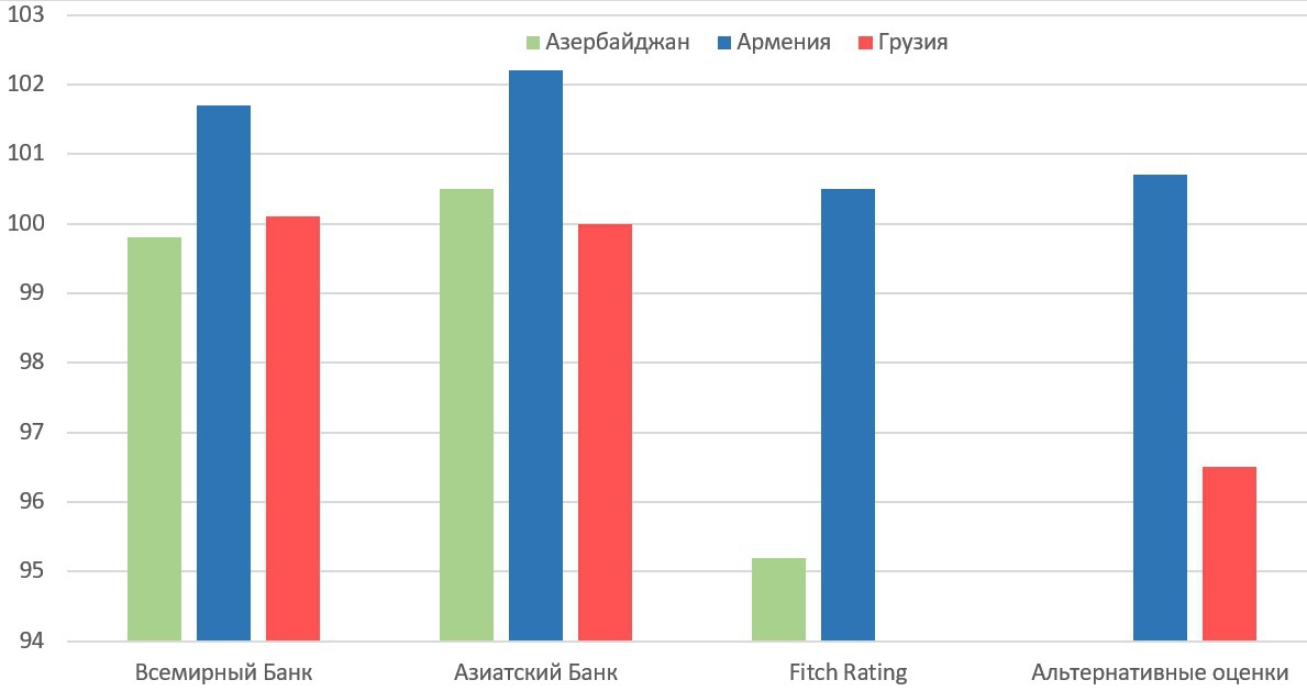 Таблица 5. Разные прогнозы прироста ВВП Армении, Грузии и Азербайджана на 2020-2021 гг.