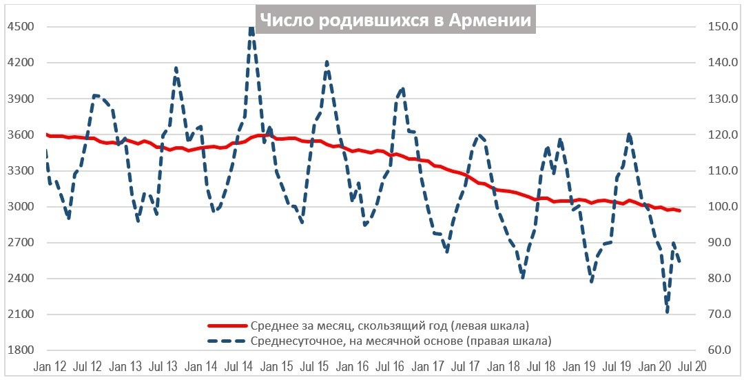 В США ожидают снижения числа родившихся на 300-500 тысяч из-за кризиса, в Великобритании прогнозируют снижение на 75,000. Таким образом, в США сокращение числа родившихся составит от 8% до 13.4% от уровня 2019 года. Вероятно, сокращение произойдет и в 2020 году, поскольку на количество родившихся влияет и число абортов, которое вполне может измениться, в данном случае вверх. А в Великобритании сокращение составит около 10% - 11%. Это существенные цифры и, если такой эффект действительно будет иметь место в развитых странах, то совсем его избежать не удастся и Армении, тем более что мы знаем, что в прошлом и в Армении по мере ухудшения экономической ситуации рождаемость падала. См. также: