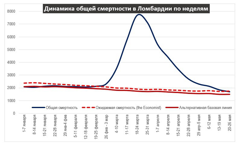 Рис. 5. Избыточная смертность в Ломбардии