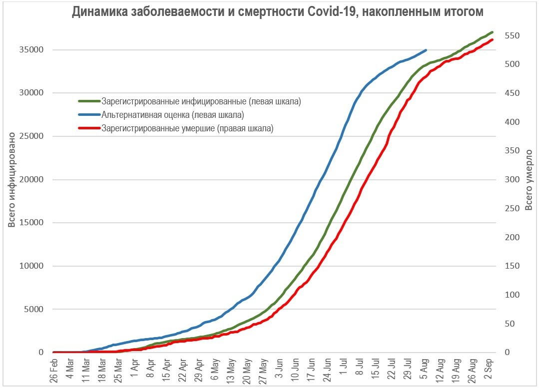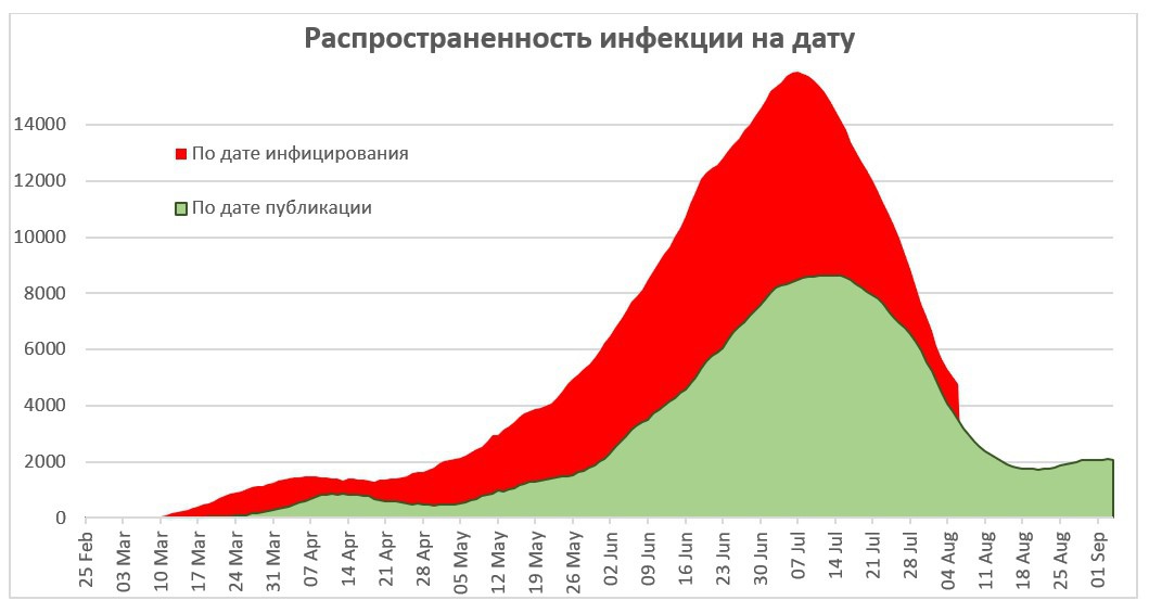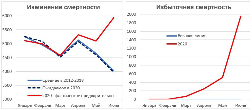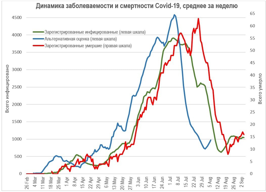 Если такое же соотношение сохранялось в июле и августе, то к 1 сентября число умерших должно было составить 6,959 человек, а к настоящему моменту – более 7,100.