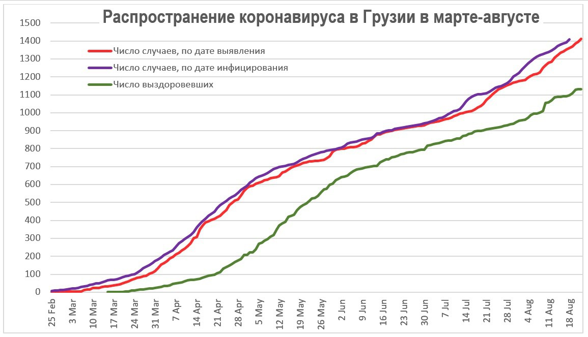 График 1. Распространение коронавируса в Грузии за время эпидемии