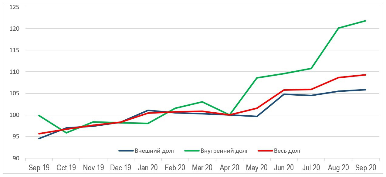 Тот рост, который мы видим в последние месяцы, заметен, но не катастрофичен. Также стоит отметить, что в первую очередь он происходит за счет внутреннего долга, который с начала кризиса вырос более чем на 20%.