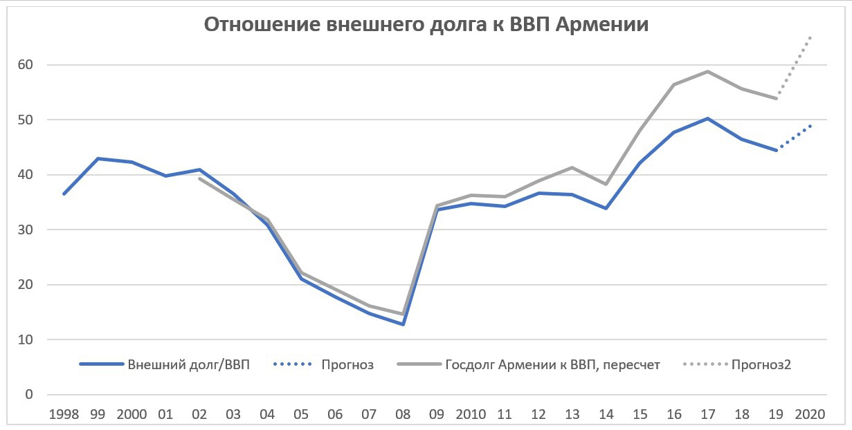 График 3. Долговая нагрузка армянской экономики, 1998-2020
