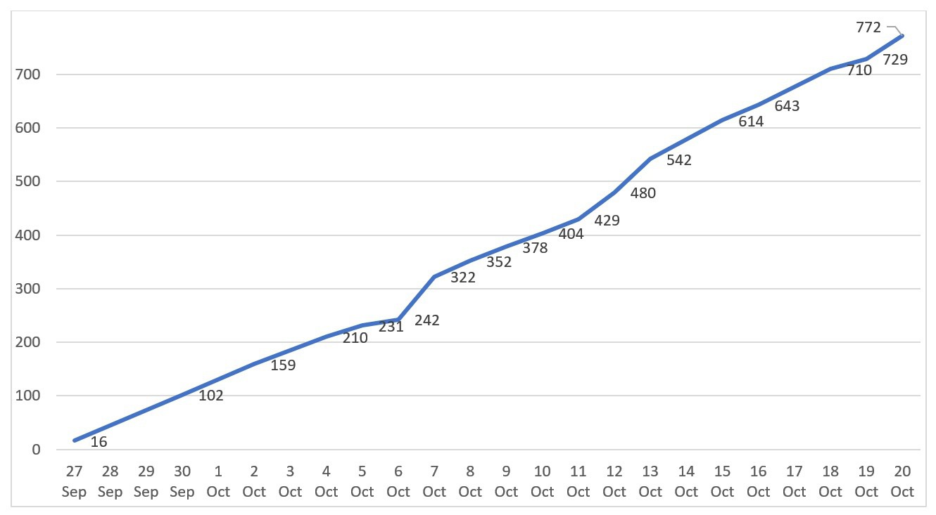 Согласно докладу омбудсмена Арцаха, на 17 октября, было убито 37 мирных жителей, в том числе 8 женщин. Из них 21 погибли дома, 4 на работе, 12 в других местах. Число людей, получивших тяжелые ранения – 96, в том числе 18 женщин. Из них 55 – дома, 6 в транспорте или убежище, 12 на работе, 23 в других общественных местах. Еще 20 мирных жителей получили легкие ранения.