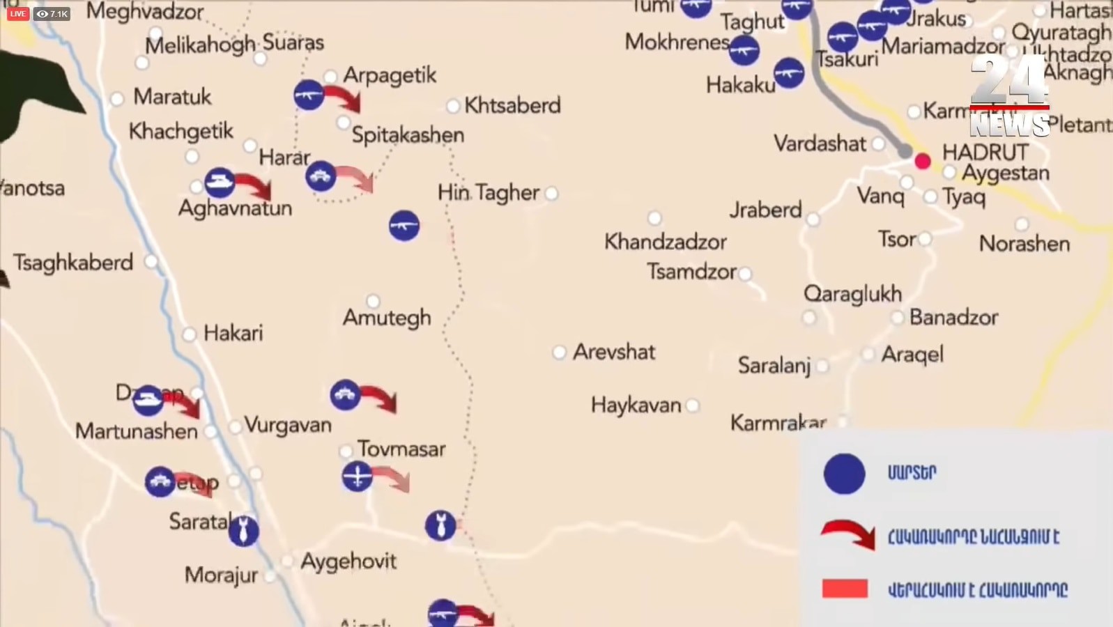 Сегодня впервые Министерство обороны Армении опубликовало собственную карту боев. Выглядит эта карта следующим образом.