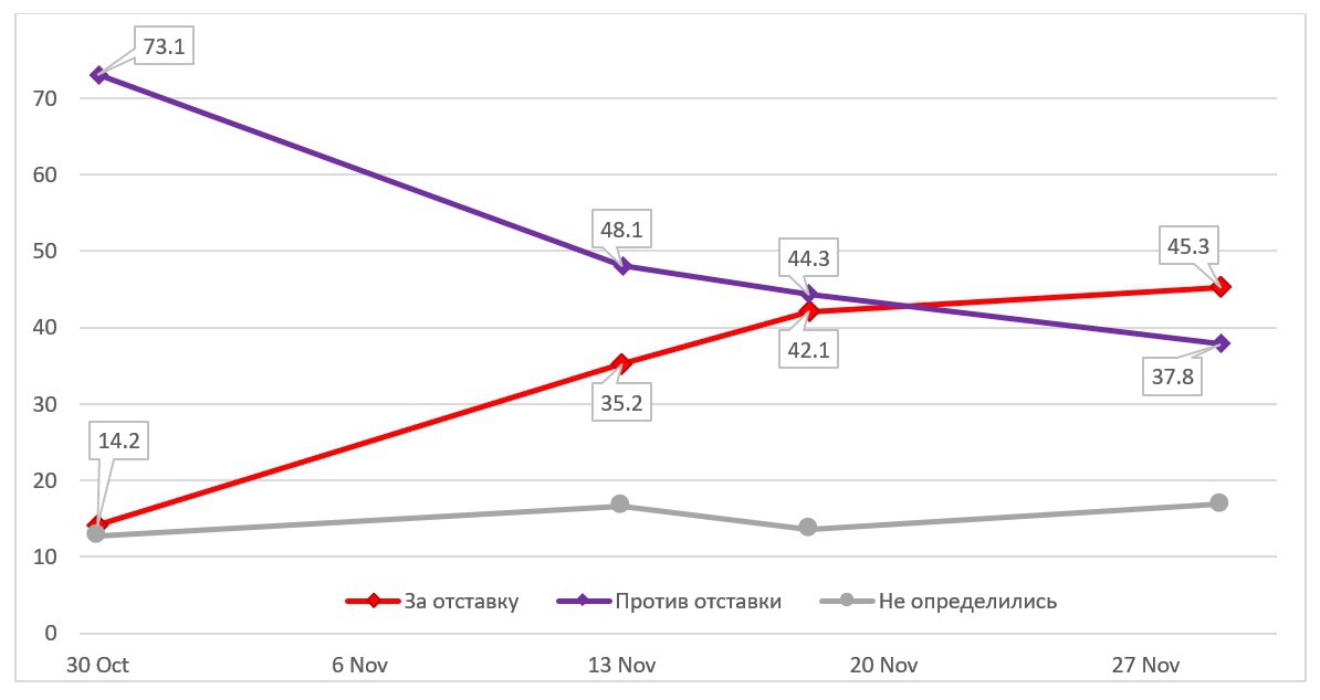 Это не означает, что массы за Пашиняна: массы расколоты и постепенно определяются против него. В частности, интересна динамика того, в какой степени люди готовы потребовать требование об отставке Пашиняна (опросы MPG/Gallup Int.).