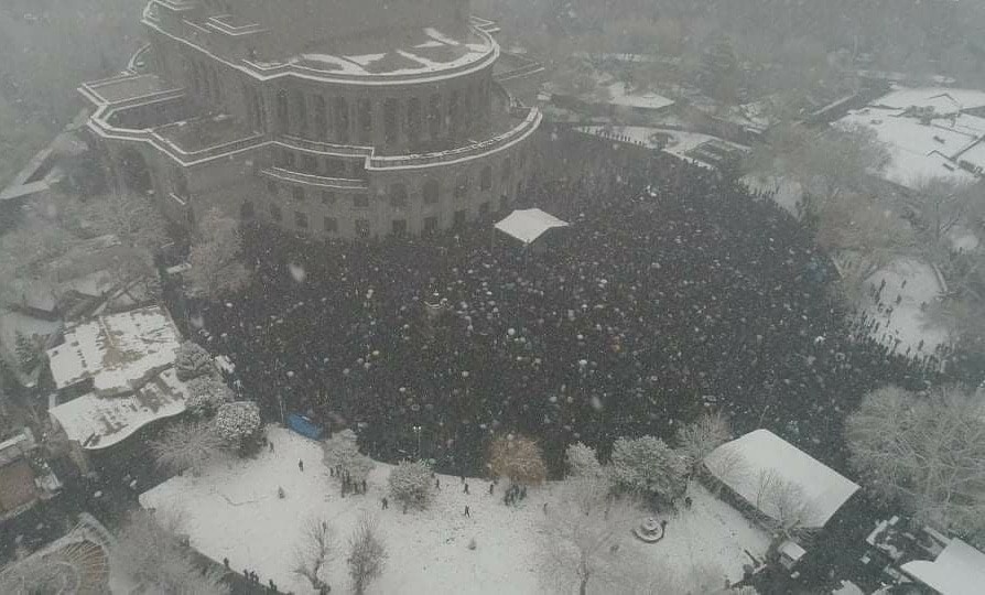 На самом деле, перевод противостояния в сферу количества людей на площади - это игра на поле Пашиняна, на котором еще с 2007 года ему нет равных. Но оппозиция приняла эти правила и пытается играть по ним. На митинге на пике было около 14 тысяч человек. Площадь Свободы перед оперой была полностью занята, но с меньшей плотностью, чем обычно: из-за плоходй погоды, многие были в толстых куртках или с зонтами, от чего плотность толпы падает. Ниже - фото с дрона, активно распространявшееся в телеграм-каналах.