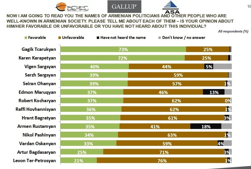В действительности, «революция» это восприятие и создала. На графике - общественное восприятие политических деятелей Армении ровно 4 года назад. Целиком опрос - по ссылке. (ASA / Gallup Inc).