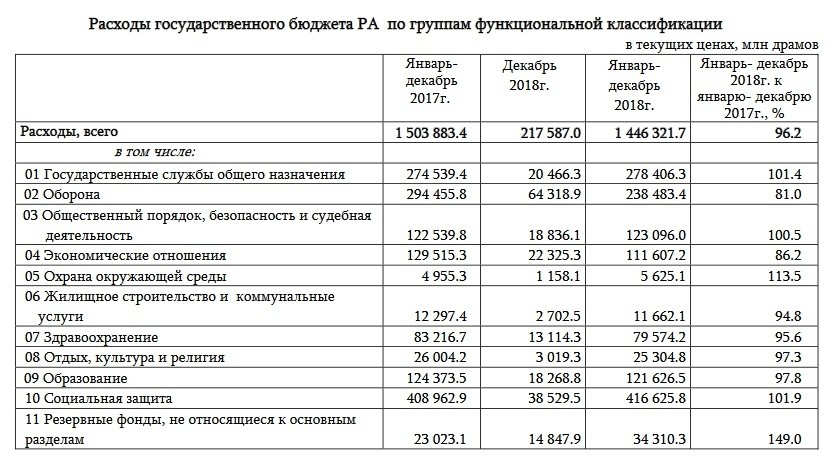 Таблица 3. Расходы бюджета Армении в 2017-8 гг. См. строку 02. Оборона.