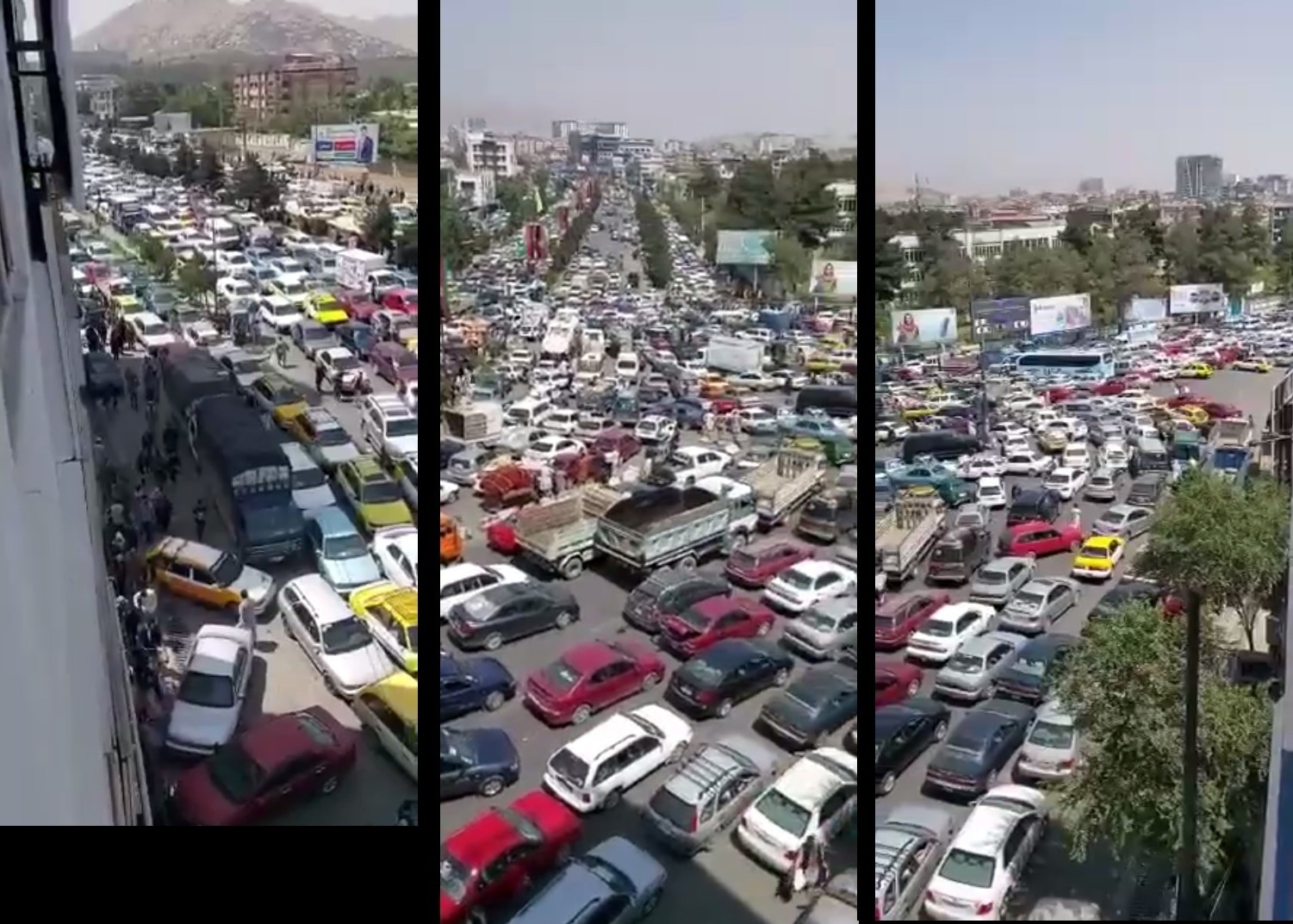 Пробки на дорогах в аэропорт Кабула днем 15 августа.