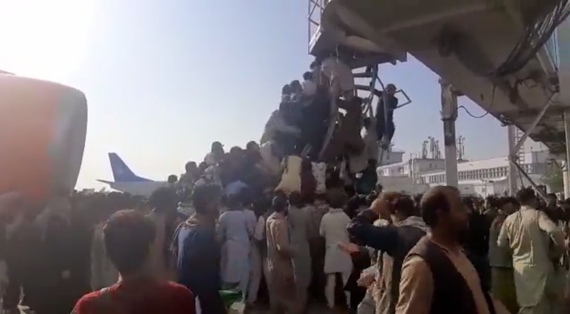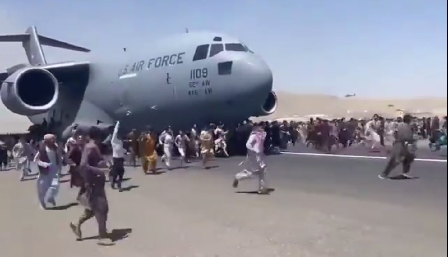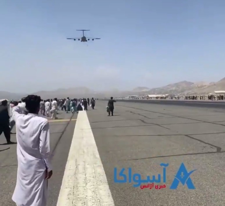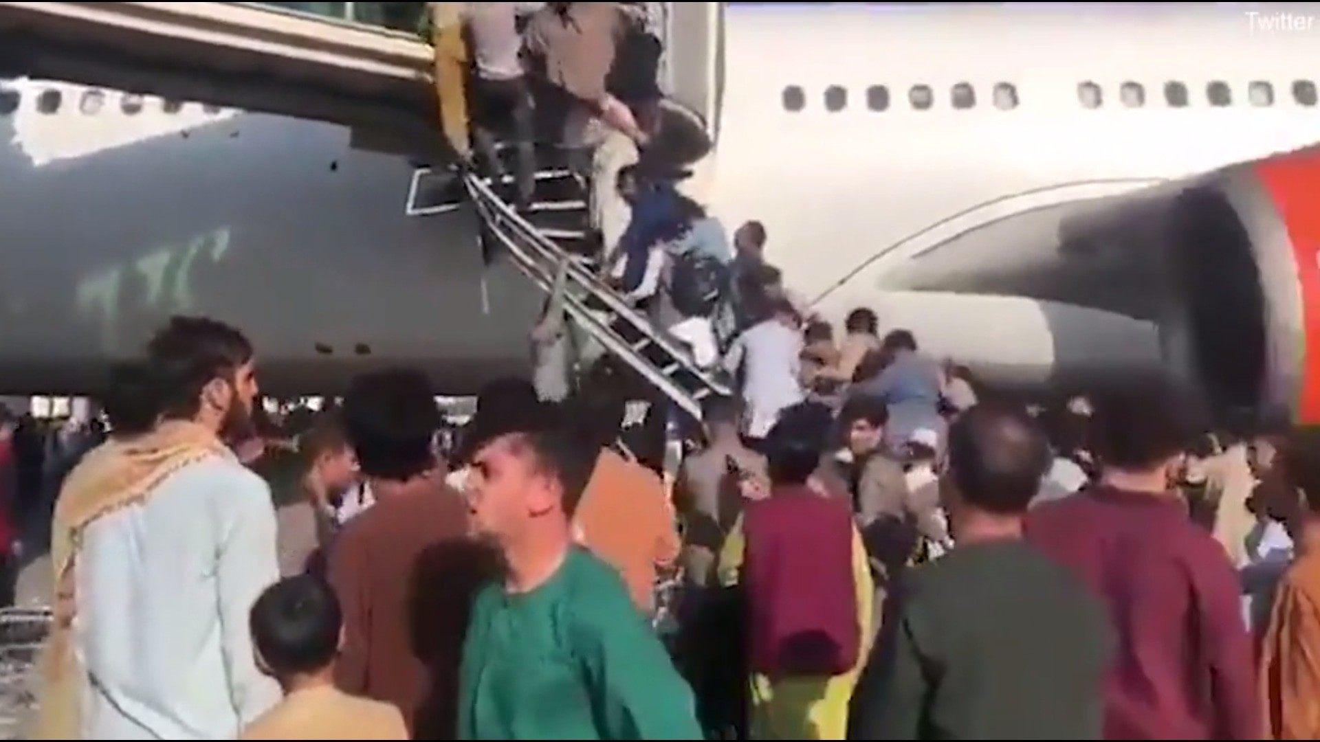 Афганцы пытаются взобраться на американский самолет (скриншоты из разных видео)