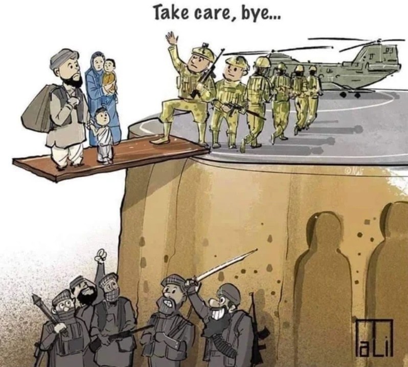 И если до 15 августа эвакуация выглядела не очень красиво по отношению к американским ценностям (карикатура от 13 августа)