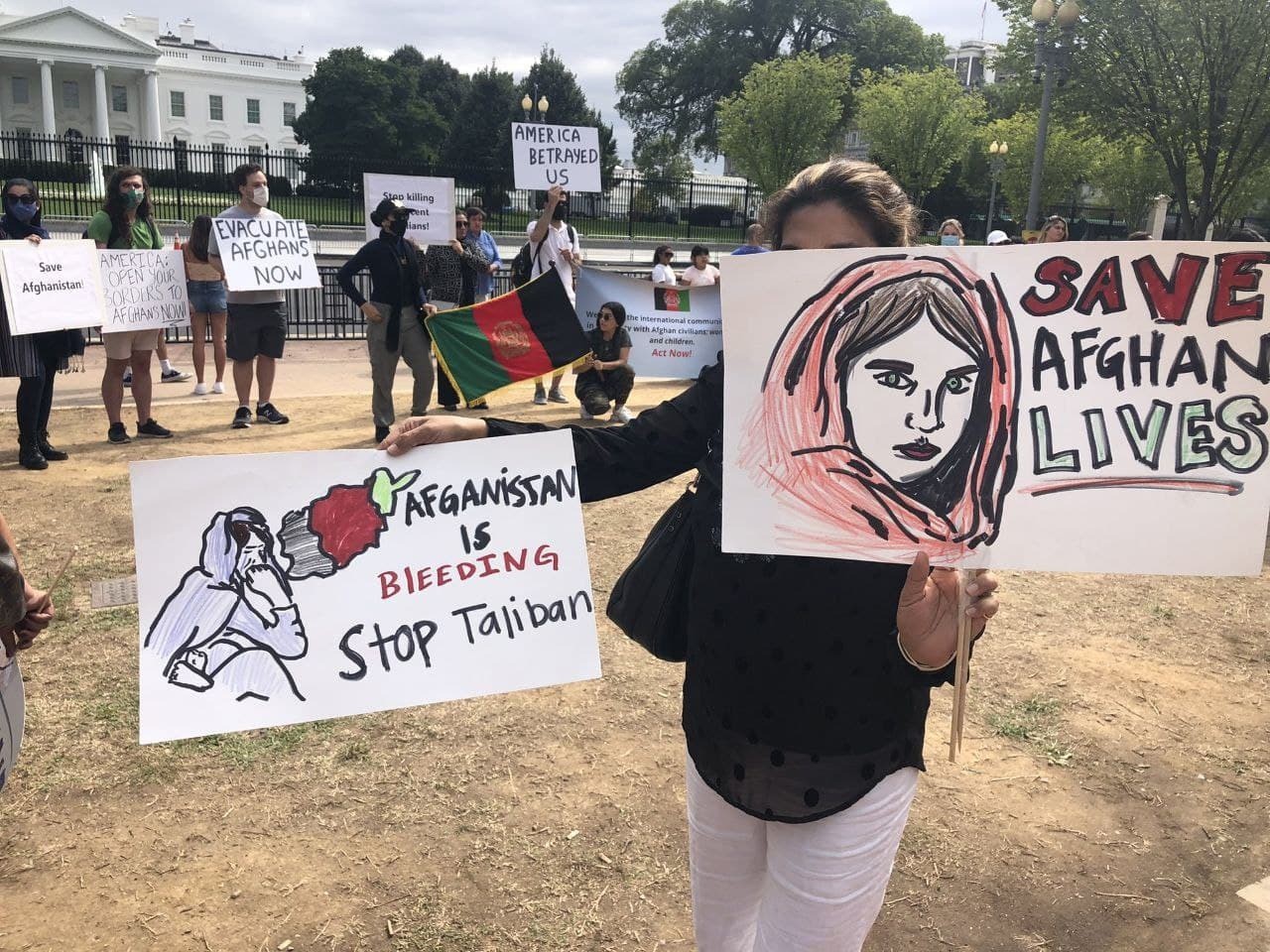 Немногочисленные афганцы в США выразили протест, но предпочли не показывать лиц; вероятно, в Афганистане у них еще есть родственники.