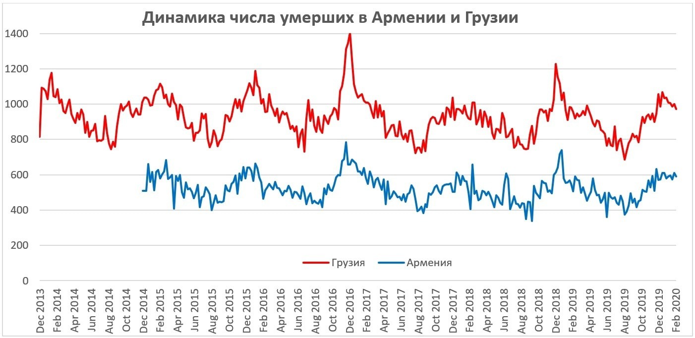 *Примечание: данные за последние недели 2013 года получены из усреднения недельных данных на основании ежемесячной демографической статистики смертности, данные Грузстата: https://geostat.ge/media/37628/22---gardacvaleba-TveebT.xlsx