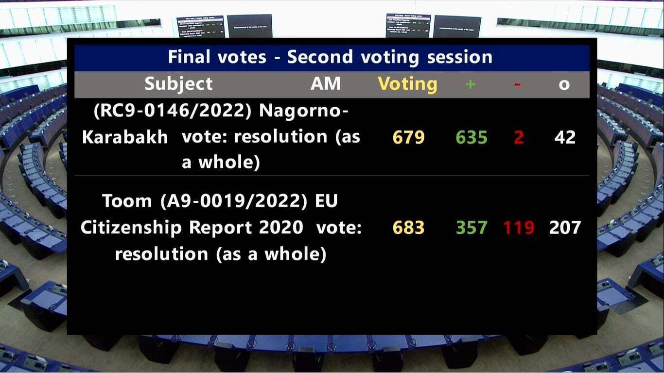 На днях Европарламент утвердил резолюцию №2022/2582(RSP) «Об уничтожении культурного наследия в Нагорном Карабахе», за которую проголосовало подавляющее большинство депутатов. Расклад по голосованию следующий: 635 депутатов «за», 2 – «против», 42 – воздержались. Для сравнения, за резолюцию, осуждающую «российскую операцию на Украине» и призывающую к введению санкций, в том числе запрета SWIFT-а и импорта энергии, проголосовало за 637 депутатов, против 13 и еще 26 – воздержались. Так что, если в Азербайджане думают, что могут безнаказанно сводить счеты с камнями и никто этого не замечает, то ошибаются. Все-таки замечают и консенсус по этому вопросу был выше, чем по вопросу о санкциях. В выступлениях уничтожение армянских памятников в Азербайджане сравнили с уничтожением статуи Будды талибами и другими случаями варварства.