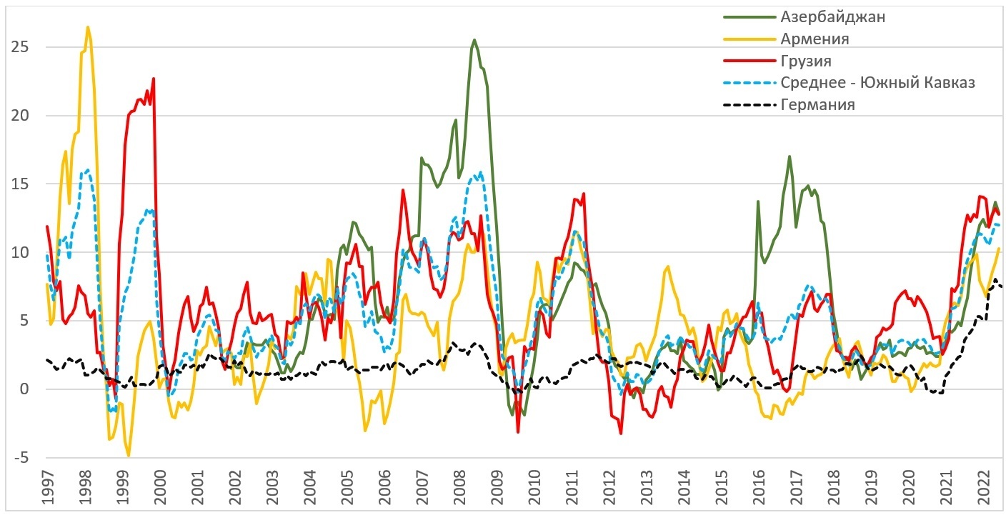 График 7. Динамика инфляции на Южном Кавказе и в Германии (для сравнения)