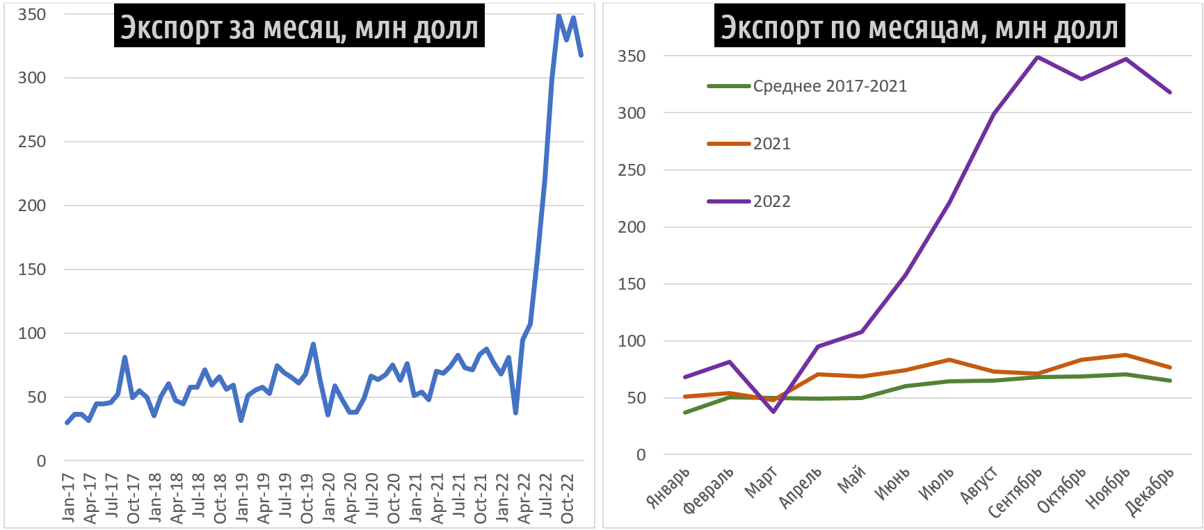График 4. Ежемесячная динамика экспорта в Россию в 2017-2022 гг.