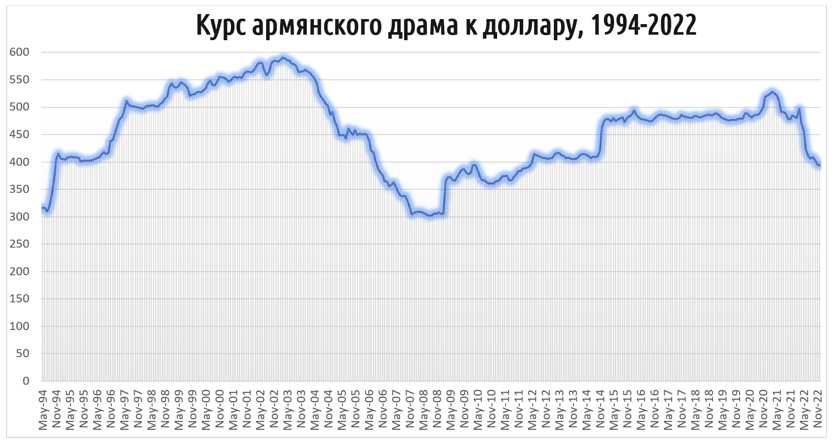 В провластных СМИ и телеграм-каналах был сделан упор на том, что на сегодня зафиксирован самый высокий размер ВВП на душу населения в истории Армении – и что ВВП на душу населения вырос с 4,966$ на душу населения за год до 6,569$ или почти на треть. Оба этих высказывания фактически верны, но манипулятивны. Во-первых, в мире почти нет стран, которые бы в 2022 году не обновили свой рекорд по уровню развития, так как каждый год мировая экономика растет вслед за ростом населения и технологического уровня, а уж для развивающихся стран с уровнем ниже среднемирового, это вообще не является фактом, который есть смысл упоминать. Во-вторых, ВВП надо измерять в собственной валюте, тогда как измерение в долларах может быть точкой сравнения преимущественно с другими странами, так как номинальный ВВП в долларах в текущих ценах является очень конъюнктурным показателем.