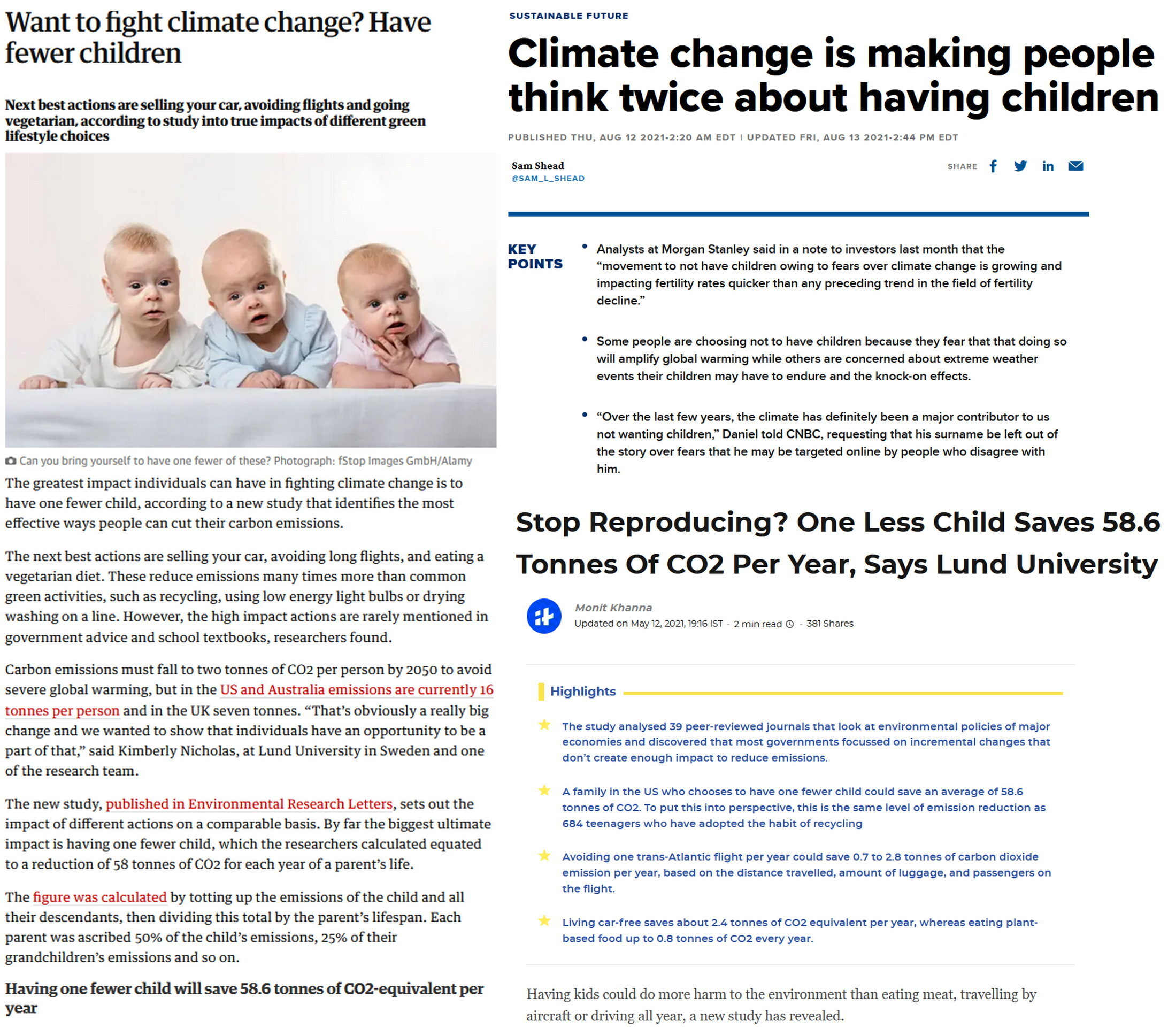 Но это не означает, что снижение рождаемости в нордических странах – загадочный процесс. Есть несколько тенденций, которые явно повлияли на происходящее. Рассмотрим их по очереди. Первое, хотя и не самое очевидное – распространяющееся в развитых странах убеждение, что рождаемость плохо влияет на климат, и лучшее что можно сделать для борьбы с климатическими изменениями – это вымереть всем человечеством отказаться от детей. Конечно, не оспаривая наличие климатических изменений и антропогенной их природы, тем не менее нельзя не сказать, что самое неадекватное – искать решение в отказе от детей вместо того, чтобы внедрять энергосберегающие технологии и практики, расширять срок службы промышленных товаров, а также отказ от потребительства как ценности, то есть полностью сменить экономическую модель. Пропаганда отказа от детей не только этически неадекватна, но и основана на очень сомнительных данных. Но как бы там ни было уже есть достаточное количество сигналов, что климатические соображения уже влияют на рождаемость в развитых странах. Кстати, нелишним будет вспомнить и то, что Грета Тунберг родом из Стокгольма.