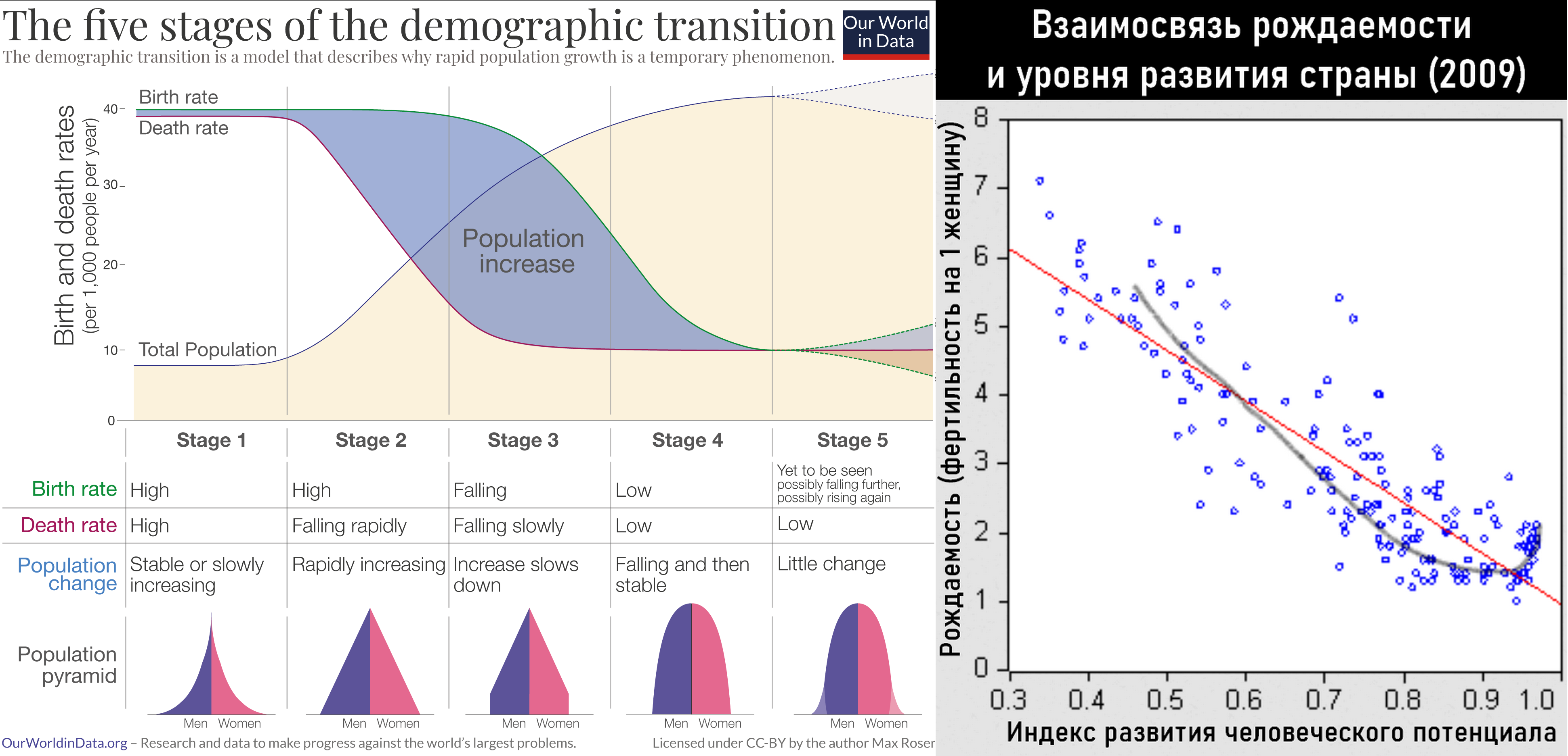 Отчасти это действительно так: миграционные потоки явно направлены в сторону европейских стран, а не в сторону стран Северной Африки (разве что для транзита), но это лишь часть истории. В конечном счете мы знаем о существовании демографо-экономического парадокса, в рамках которого в бедных странах рождаемость выше, чем в богатых. Однако мы знаем также много примеров стран, где падение уровня жизни привело к падению рождаемости. К этому относится и все постсоветское пространство. См. также: Динамика рождаемости доиндустриального мира и модерна. Причины ее снижения (16 ноября 2018).