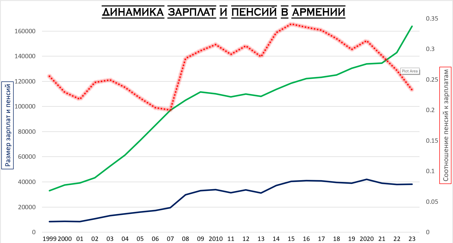 График 3. Изменение соотношения зарплат и пенсий в Армении, 1999-2023