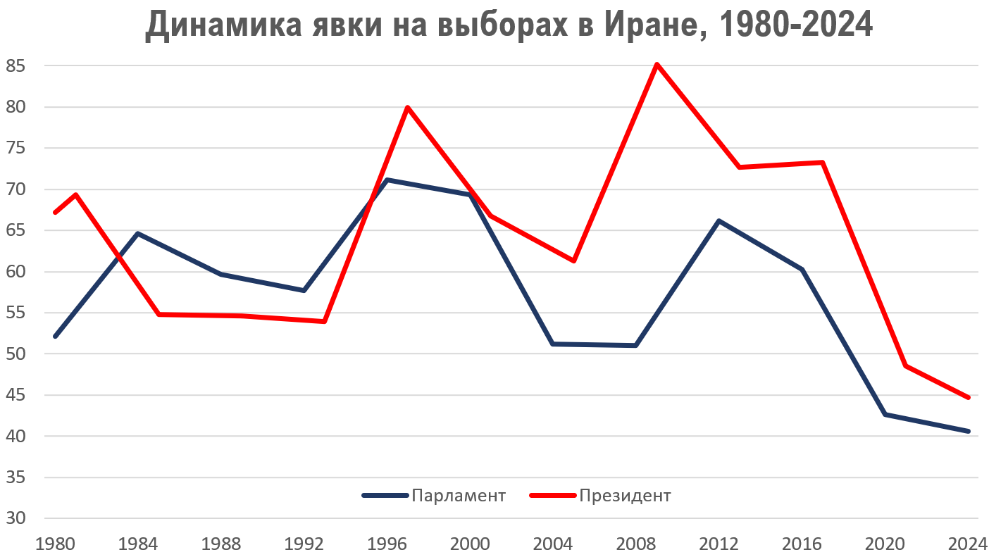 М3. Динамика явки на общенациональных выборах в Иране, прошедших после Исламской революции 1979 года*