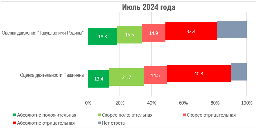 В итоге, уровень положительного отношения к Движению снизился с 53% до 34%, а к Пашиняну – напротив, вырос с 28% до 35%. Правда, антирейтинг Пашиняна по-прежнему выше, но как мы видим, эмоциональное соотношение сегодня уже не то, что было два месяца назад.