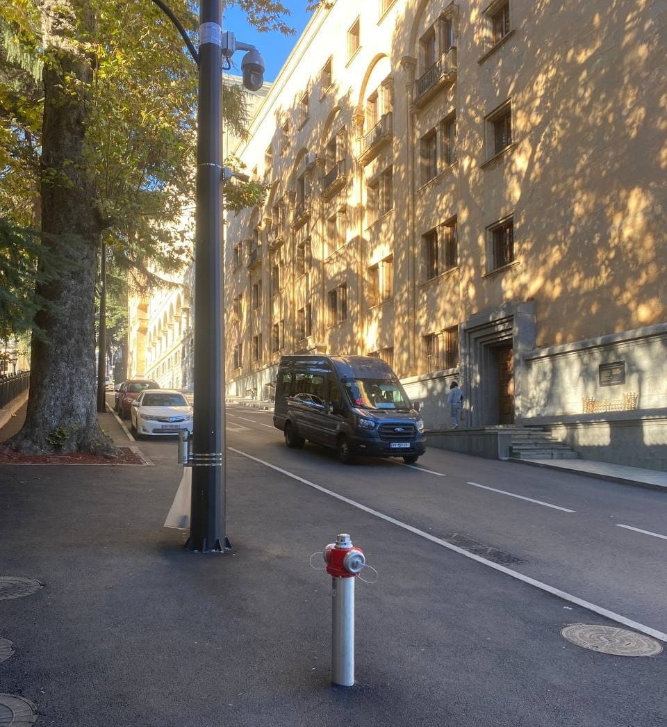 Противопожарный гидрант, установленный около парламента Грузии для того, чтобы снабжать водометы на случай разгона акций.