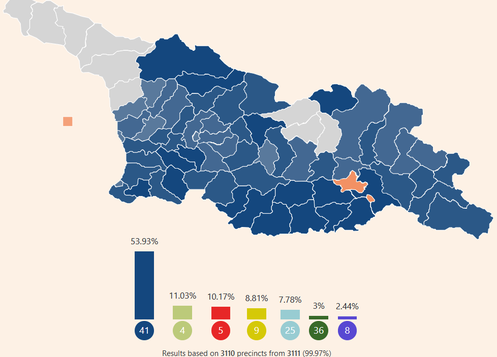Это не означает, что не было фактов подкупа населения, судя по всему они были. Но факт также и в том, что даже в Тбилиси власти получили очень значительное количество голосов, хотя Тбилиси был самым оппозиционным. К примеру, на парламентских выборах 2012 года "Национальное движение" получило в районе Ваке всего 23%, а в 2008 году на президентских выборах Саакашвили получил там 28% голосов. На этих выборах "Грузинская мечта" получила в Ваше 38% и это самый низкий результат на уровне избирательного округа в Грузии.