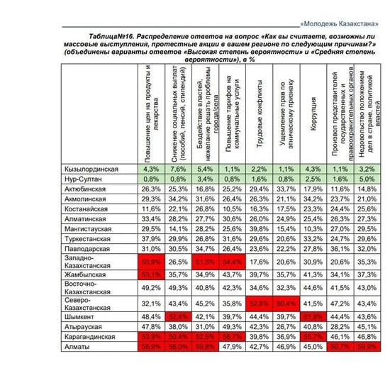 Среди рассмотренных наиболее значимым следует считать демографический фактор – массовая иммиграция без соответствующей социальной адаптации в г. Алматы и в целом возросшая географическая мобильность и высокий естественный прирост при плохо действующих социальных лифтах. Вторым важным фактором является высокий уровень преступности (в том числе насильственной) во всем Казахстане, а особенно в г. Алматы – и в целом низкий уровень социального благополучия, несмотря на относительно высокий уровень экономического развития. Раскол элит также сыграл значительную роль, при очевидном конфликте нынешнего и бывшего президентов, и множестве других, менее очевидных конфликтов. Но пока нет достаточных оснований считать, что это противостояние происходит из жузовой структуры общества. Раскол элит обнажил слабую институциональную состоятельность Казахстана; устойчивость Казахстана в прошлые десятилетия в этом смысле выглядит скорее как следствие отсутствия серьезных вызовов, чем успешному их противодействию. Также заметно доминирование личностных мотиваций над государственными для многих политических деятелей Казахстана.