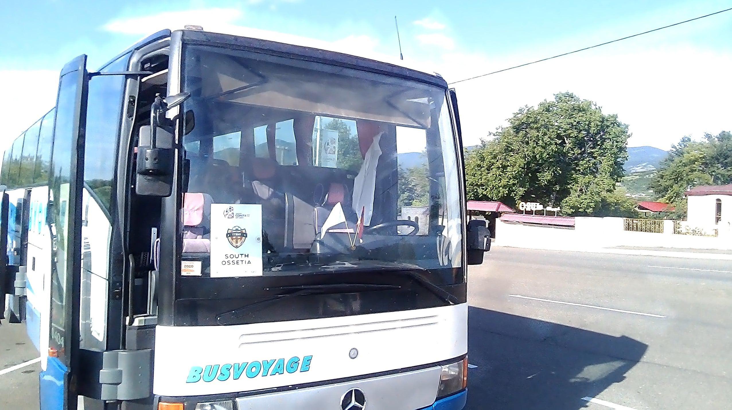 Автобус с командой из Южной Осетии, я встретил около нашего знаменитого памятника " Дед да баба".